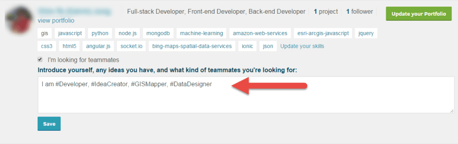 - When you register for the hackathon, please update your skills and leave a message in the Introduce yourself, any ideas you have, and what kind of teammates you're looking for by identifying what roles you can play for the hackathon, such as: